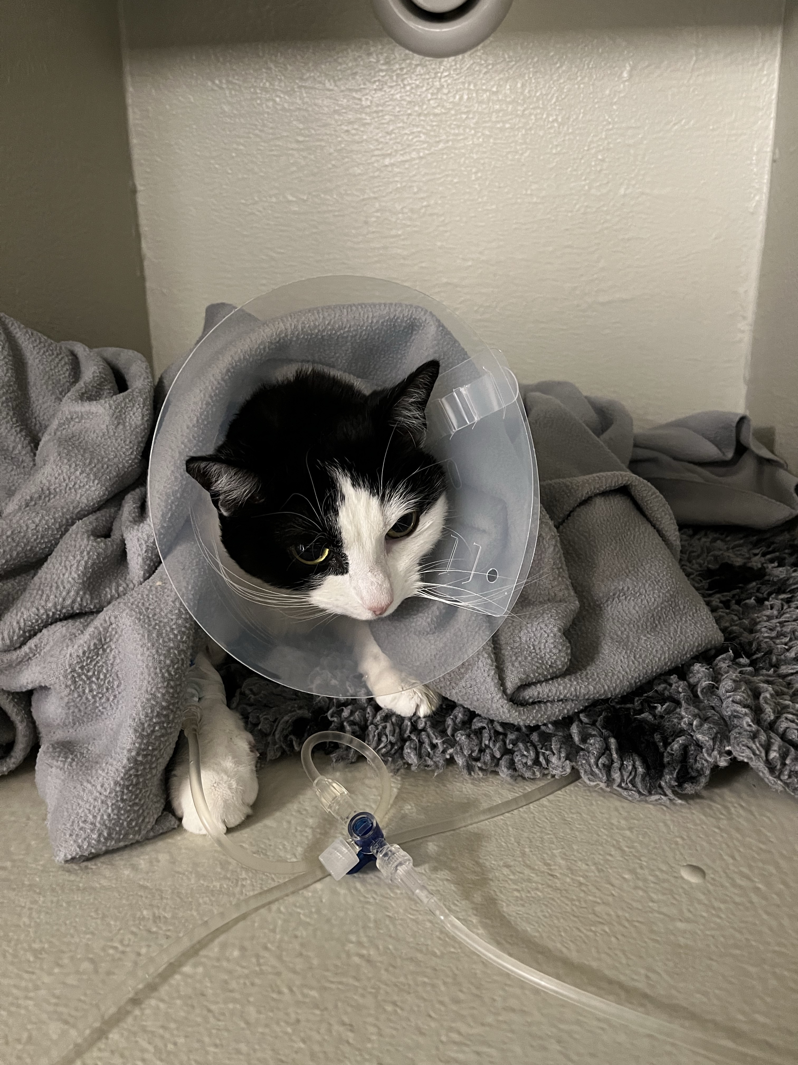 Lilo kom till oss då hon svalt ett föremål som fastnat i tarmen. Djursjukhuset kontaktade oss då det visade sig att ägarna tyvärr inte hade möjlighet att betala för en operation, då försäkringen inte skulle räcka. Ägarna överlät ansvaret för henne och hon kom till oss. Föremålet visade sig vara en liten knapp.
