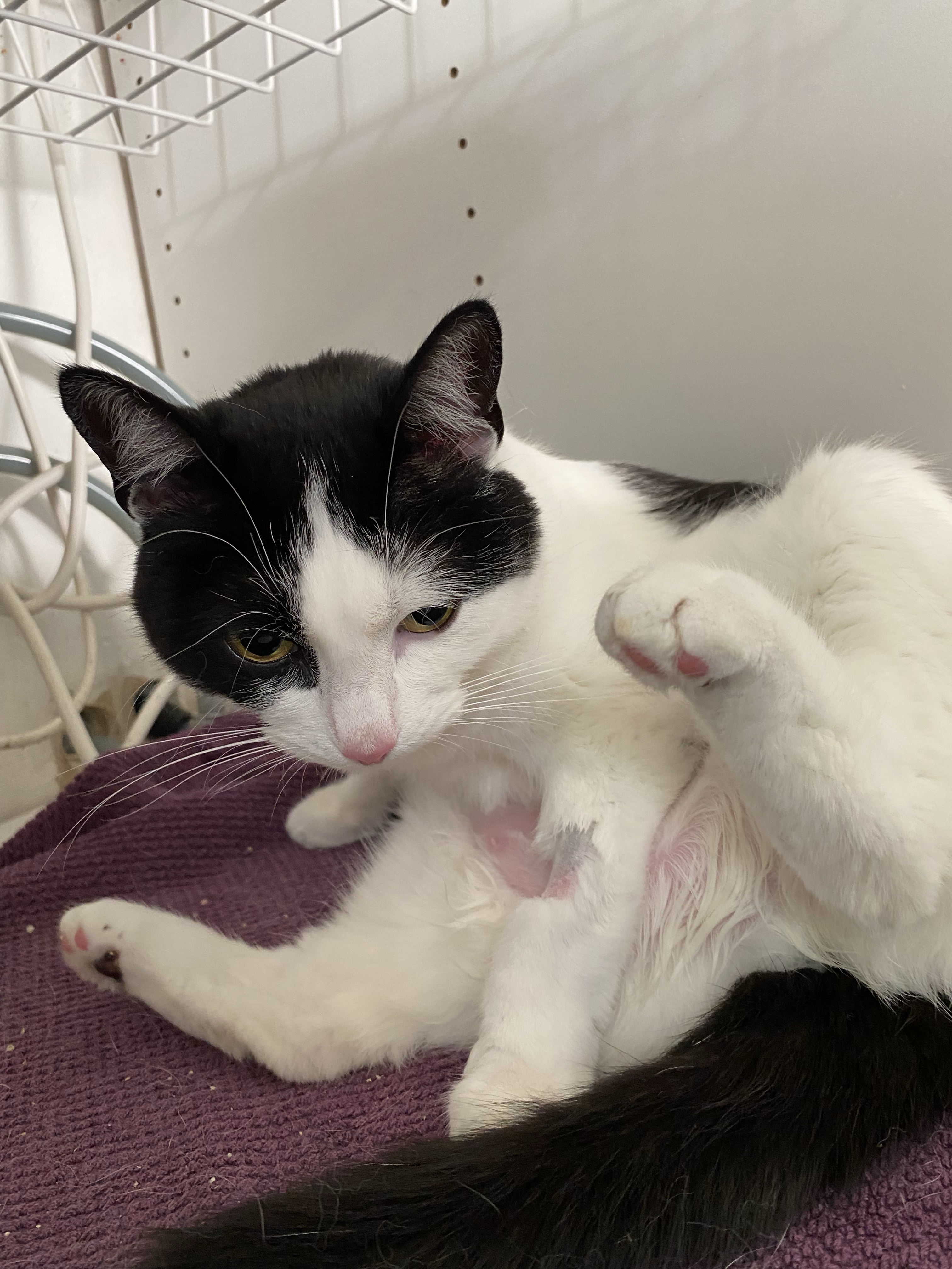 Lilo är en social tamkatt som älskar mat, både torr-och våtmat. Hon är lite blyg i början men när hon trivs så har du en supergosig, trevlig och busig kisse. Hon gillar när jourhemmet på lek jagar henne och hon småpratar och ”skvirrar” supergulligt 😽 Men hon är också duktig på att underhålla sig själv med leksaksmöss.