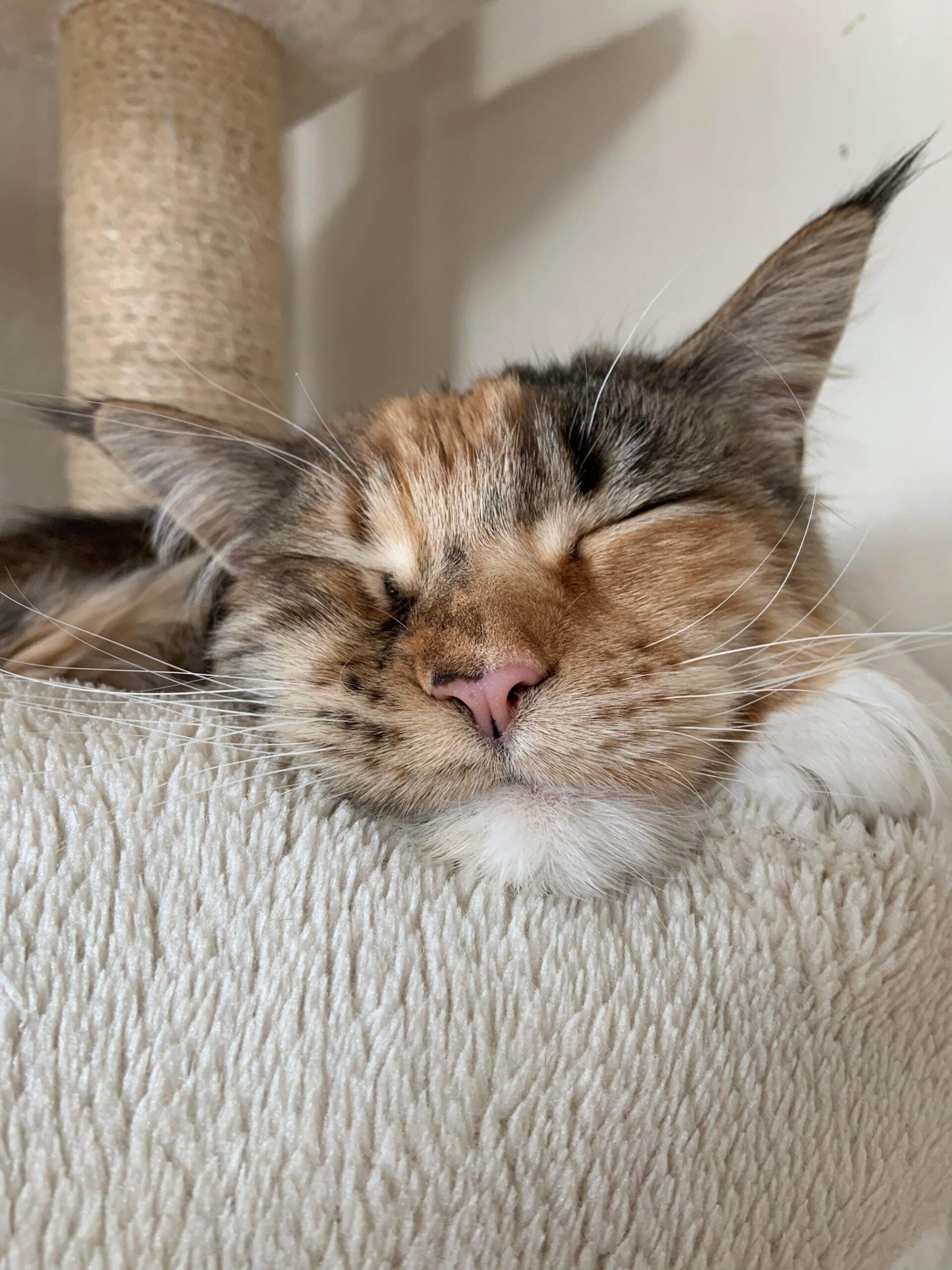 Veterinären kontaktade i sin tur en volontär i vårt nätverk och efter samtal fick mamma Zol-Britt med ungar flytta in i vårt jourhem för hjälp. Inte för att hormonerna försvann, det blev många långa och hårda kamper för att ge henne medicin och socialisera hennes ungar. Men hennes f.d familj höll tät kontakt, besökte jourhemmet och hjälpte till att hitta intressenter till ungarna. Idag är hon en lugn och snäll honkatt, med fem av sex ungar utflugna ur boet. Nu väntar hon på sitt eget för alltid-hem.